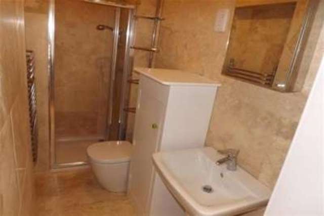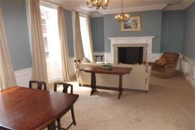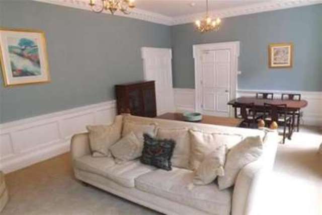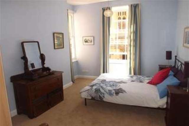 This first floor flat is offered to let furnished, and has been decorated and carpeted to a high standard. The accommodation is dominated by a large and grand living room complete with high ceiling, cornice, panelling, sash windows and a period style ornamental fireplace. There is a modern fitted kitchen and two double bedrooms, one of which has an en suite bathroom with over-bath shower, as well as a modern main shower room, attractively tiled in travertine stone. The property also has the advantages of gas central heating and the use of a bicycle store, but does not include car parking.