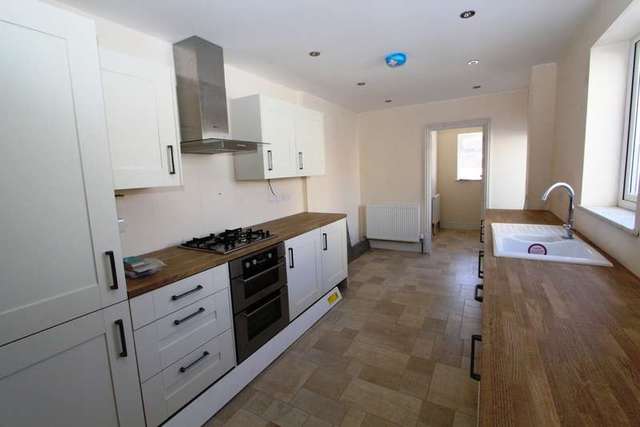 KITCHEN kitchen has been fitted in a modern range of base units complementing timber effect worktops over housing one and a half bowl porcelain sink unit with mixer tap over and drainer to side. Integrated fridge freezer and dish washer. Electric double oven and four ring gas hob with light and extractor over. Matching wall mounted units over. inset spotlights. uPVC double glazed window to the rear elevation and uPVC double glazed door providing access on to the rear elevation. Timber door to