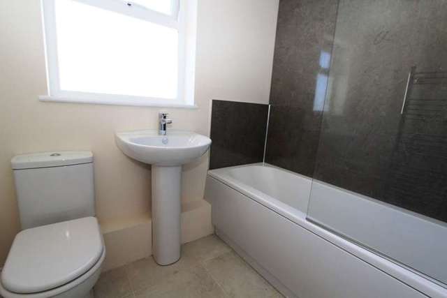 BATHROOM Fitted in a matching white three piece suite comprising panelled bath with mains shower over and glass screen to the side, low level central flush WC and pedestal wash hand basin with mixer tap over. uPVC double glazed window to the side elevation.