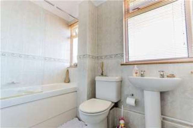 On the first floor, there are three bedrooms, two of which are double, and a bathroom suite with panelled bath, shower and screen over, wash basin, W.C., and tiled walls.