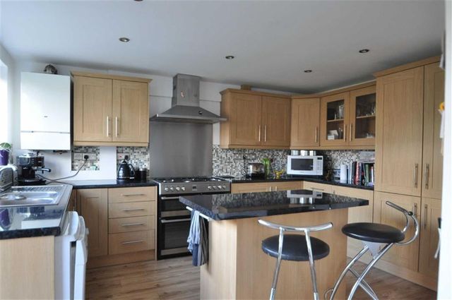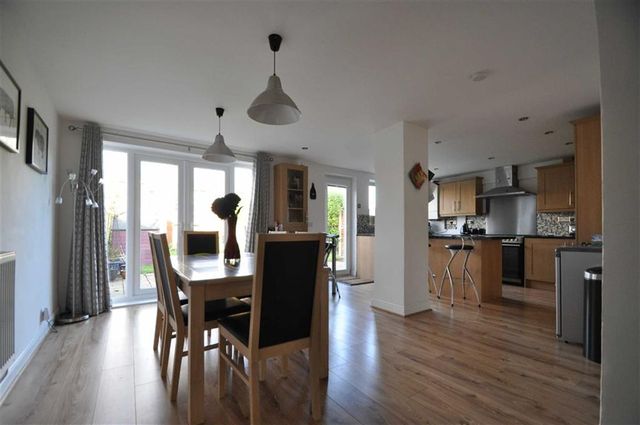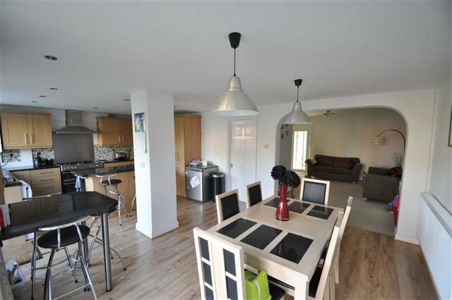 23'0 x 10'5 (7.01m x 3.18m)Rear facing uPVC double glazed window. Range of eye level and base storage units. Stainless steel two bowl sink unit with mixer tap over. Extractor hood. Electric/gas cooker point. Plumbing for dishwasher. Further appliance space. Ceiling light point. Ceiling mounted spotlights. Radiator. Combination boiler. Laminate flooring. Double glazed french doors. Rear facing double glazed door.