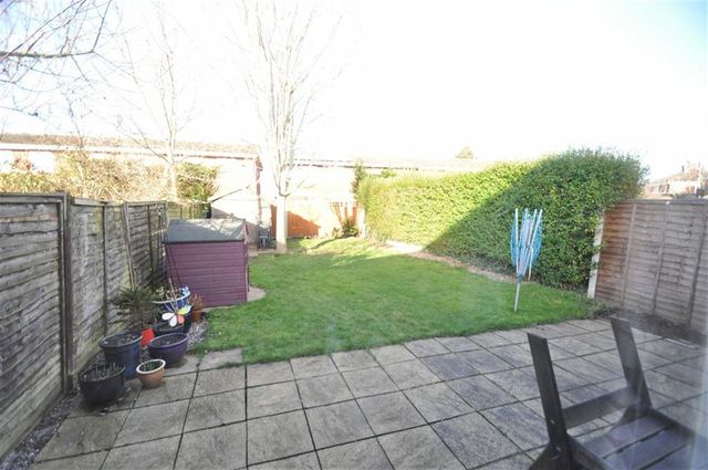 Mainly laid to lawn. Patio area. Shed. Enclosed by timber panel fencing.
