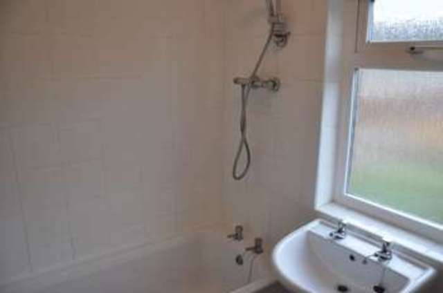The bathroom has a three piece white suite with a bar mixer shower over the bath, tiled walls and a upvc window to the rear aspect.