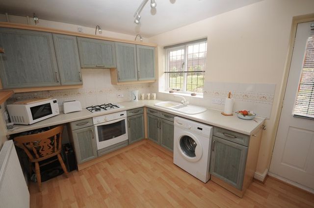 Fitted with a range of wall and base units, electric cooker and integrated gas hob, one and a half bowl stainless steel sink, preparation work surfaces, complimentary tiling, plumbing and appliance space for washing machine, space for a fridge freezer, radiator, laminate flooring, double glazed window to rear elevation and door to rear garden.