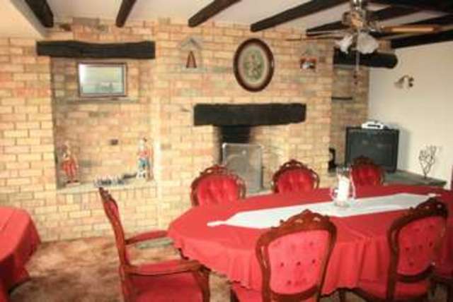 DINING ROOM : 18'6" x 15'2" (5.64m x 4.62m) , Feature natural brick fireplace incorporating an open firegrate. uPVC double glazed window to front elevation. Radiator. beams and continental fan light to ceiling. Television point. Stairwell storage cupboard. Doors to second stairs to first floor. Built in storage cupboard with power and door to kitchen.