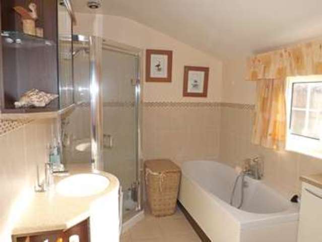 Accessed through the utility room, the SOUTH-FACING garden is fully enclosed by fencing to all sides and benefits from a sunny aspect. There is a LARGE DECKED AREA which extends across the majority of the rear of the house with doors from the utility room and the lounge. Exterior light point. Five steps lead down from the decking and the garden is mainly laid to lawn with borders planted with a variety of flowering shrubs, evergreens and small trees. There is an area beside the decking suitable for a vegetable/kitchen garden and storage underneath the decking. Hardstanding for small greenhouse. Outside water tap. At the far end of the garden there is a dwarf wall with steps up to a raised area laid to stone pebbles and further hardstanding for large wooden shed.