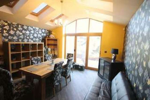 Having double glazed Bi-fold door to the rear garden, double glazed Velux windows, feature fireplace with inset gas fire, two ceiling light point, power points and door to: