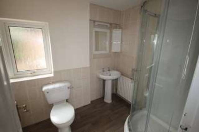 Having low level W.C, pedestal hand wash basin, panel bath with mixer shower on taps, shower cubicle, radiator, ceiling light points and obscured double glazed window to the rear.