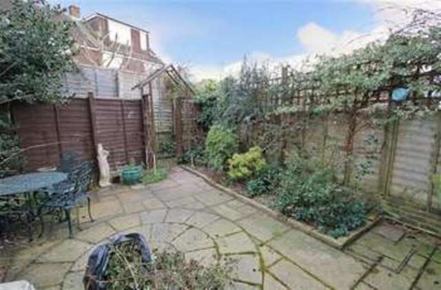The north facing rear courtyard is predominantly laid to paving with shrub boarders and a garden gate for access.