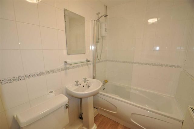 Panel enclosed bath with shower over. Pedestal wash hand basin. Low level flush WC. Fully tiled walls. Radiator. Access to loft. Airing cupboard housing new 'Ideal' combination boiler.