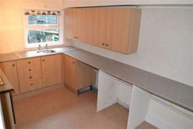 Entrance leading to 'L' shaped hallway with storage cupboard, door to large living room with sash windows overlooking pedestrian shopping area and offering natural light, electric heater. From the hallway, door and step into spacious kitchen with eye level and low level units complemented by roll edged work surfaces, stainless steel sink and drainer unit with window over, space and plumbing for washing machine, space for fridge space for freezer, oven and hob and space for small table. From the hallway door to large double bedroom with sash window and electric heating. Bathroom with low level flush WC, pedestal wash hand basin and bath.