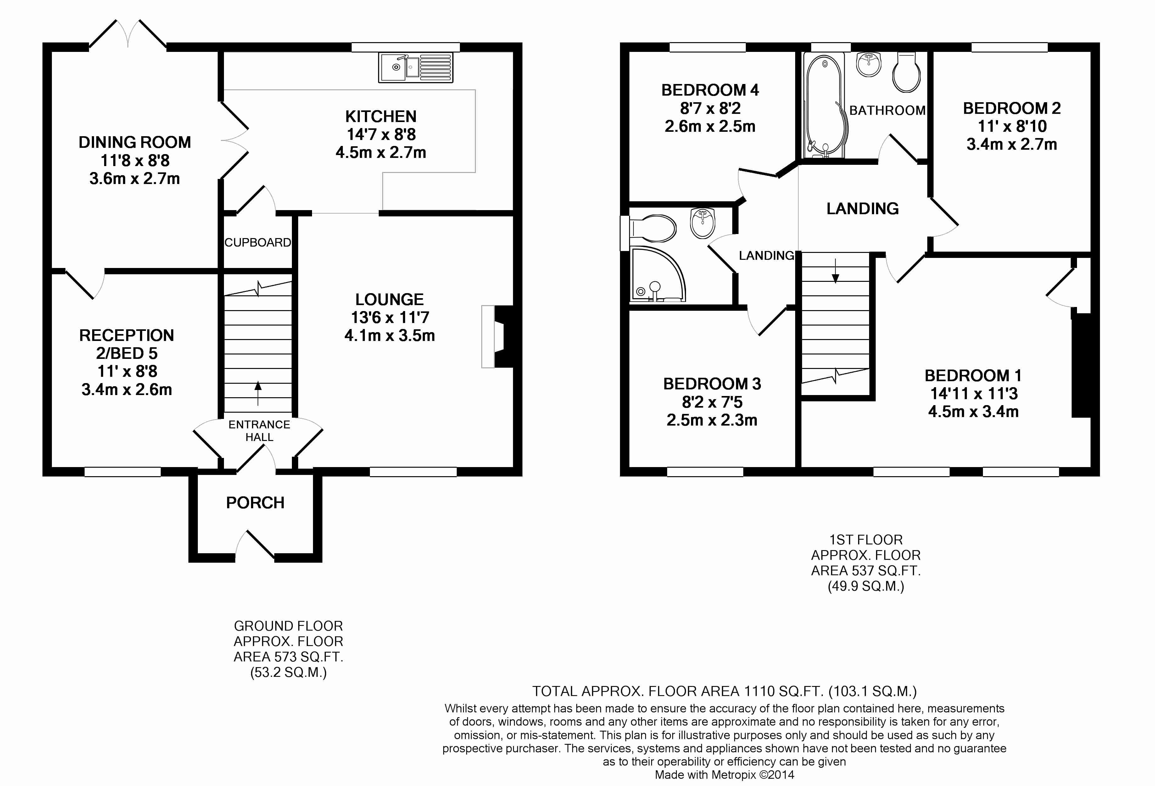 RECEPTION 2/BEDROOM 5: 11ft X 8ft 7 (3.36 x 2.63m) Double glazed window to front, radiator, door to dining room