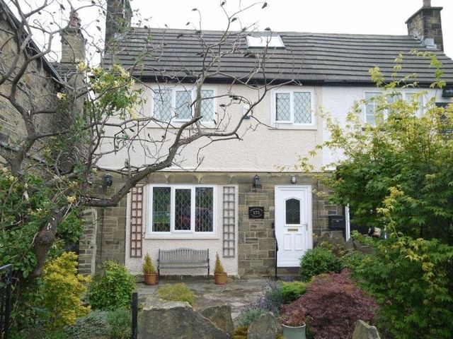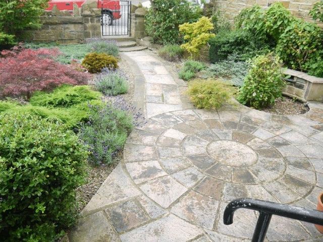 Attractive garden to front with decorative paving and a variety of shrubs. Good sized decked area to rear having stairs which lead down to paved side garden.