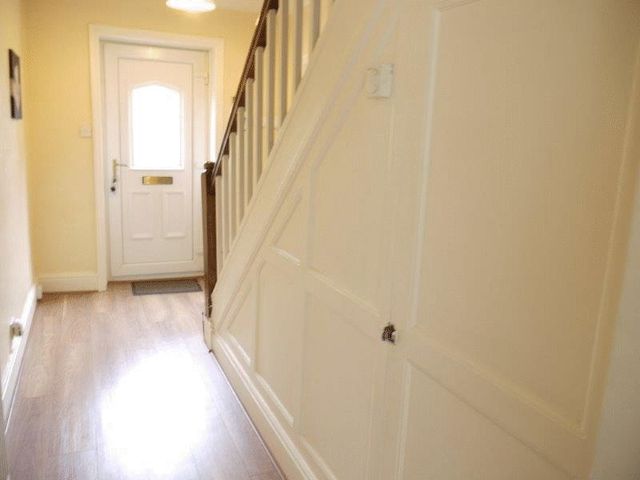 uPVC double glazed entrance door leads into entrance hall. Laminate wood flooring, useful under stairs storage. CH radiator. Staircase leads to first floor.