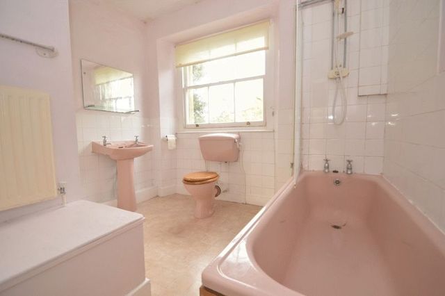 comprising: panelled bath with shower screen, fully tiled surround, shower unit and wall mounted handheld shower attachment. Low level wc, pedestal wash hand basin. Majority tiled to dado height, multi-paned sash window to the front elevation, ceiling light point, radiator. Airing cupboard housing Raven Heat wall mounted gas fired combination boiler, plumbing for washer/dryer.