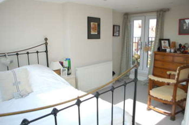 THE ACCOMMODATION COMPRISES: with approximate measurements. RECESSESSED ENTRANCE PORCH: panelled front door to: ENTRANCE HALL: exposed wood floor, double radiator. LIVING ROOM: 24’5 x 13’10 narrowing to 10’5, exposed wood floor, double glazed bay window, wood burning stove, alcoves with cupboards and shelving, 2 radiators, further fireplace, multi paned double doors to: KITCHEN/DINING ROOM: 22′ × 11′9, extensive range of cream Shaker style units comprising inset ‘Butler’ sink unit, cupboards under natural wood work surfaces, cupboards and drawers under wall cupboards, ceramic tiled floor, radiator, built in dishwasher, extractor fan, double glazed french doors to garden. STAIRCASE FROM ENTRANCE HALL TO FIRST FLOOR LANDING: BEDROOM 2: 13’10 X 9’10, 2 double glazed windows, 2 double fitted wardrobes, radiator. BEDROOM 3: 11’5 x 8’5, double glazed windows, shelving, radiator. FAMILY BATHROOM: 13’10 x 8’, period style white suite comprising roll top style bath, mixer taps, shower attachment, separate tiled shower cubicle with power shower unit, large wash hand basin, low level wc., slate tiled floor, heated towel rail, double glazed windows, radiator. STAIRCASE FROM FIRST FLOOR LANDING TO SECOND FLOOR BEDROOM 1: 19′ × 12′10 overall, double aspect, double glazed velux windows, range of fitted wardrobes/cupboards, eaves storage, radiator, double glazed doors to Juliette balcony. SHOWER ROOM: 8’11 x 7’6, white contemporary suite comprising large walk in shower with screen, pedestal wash hand basin, low level wc., slate tiled floor, part tiled walls, double glazed windows, heated towel rail.