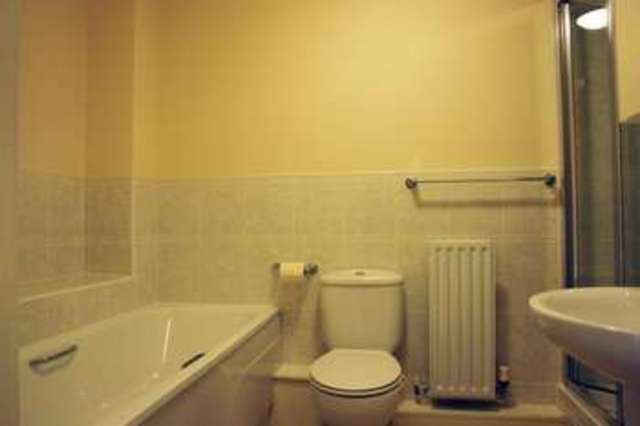 BATHROOM W.C. With three piece suite in white comprising of panelled bath, pedestal wash had basin and w.c suite, chrome taps and fittings, built in shower cubicle with wall mounted shower, splash back tiling, central heating radiator, extractor fan and bathroom cabinet.