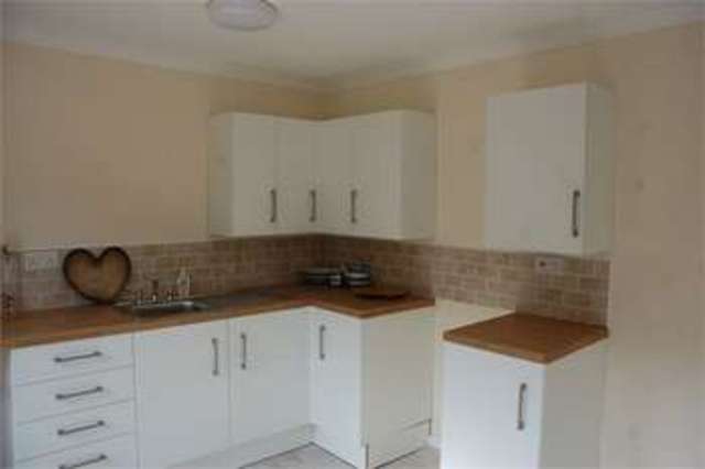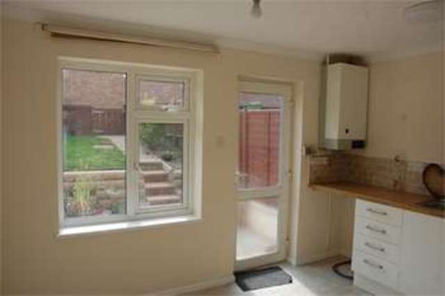 Refitted Kitchen with base units with roll edge work tops over, stainless steel sink, matching wall cupboards, and appliance spaces for a washing machine, cooker and fridge freezer. Radiator. Double glazed window to rear aspect and double glazed door to the rear garden.