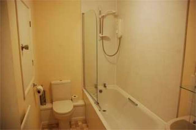 BATHROOM Refitted white Bathroom suite comprising low level WC, bath with Mira Sport shower over and wash hand basin. Tiled splash backs. Extractor fan. Vinyl flooring.
