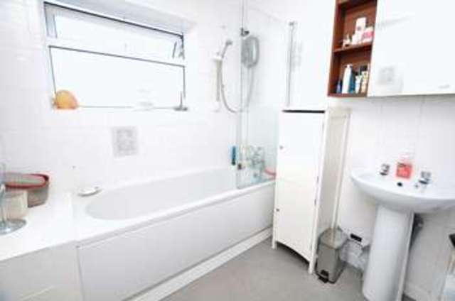 With double glazed window to the side elevation, bath with mixer taps having wall mounted electric shower and shower screen, wash hand basin, low level WC and fully complimentary tiled walls.