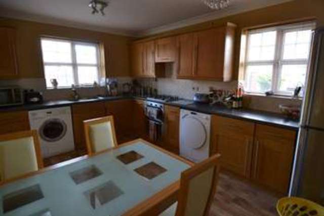 Having a range of wall and base units with roll top work surface over, tiling to splash backs, one and half stainless steel sink and drainer unit with mixer tap over, built in double oven with gas hob and extractor hood above, built in dishwasher, space and plumbing for washing machine, space for tall fridge/freezer, space for tumble dryer, wood effect laminate flooring,double glazed windows to front and side elevation and central heating radiator