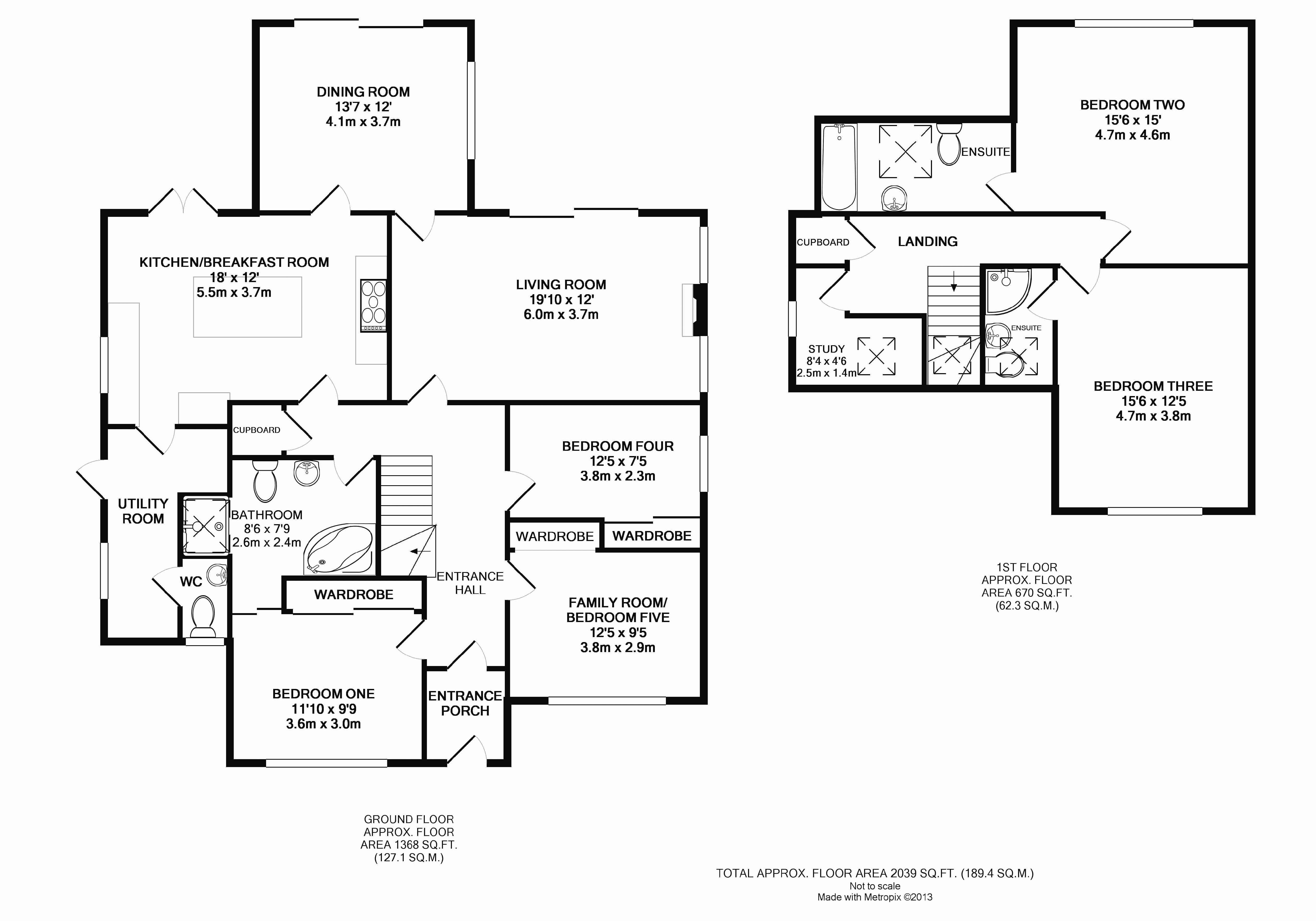 A deceptively spacious detached home offering versatile family accommodation situated in an exclusive semi rural location. The property offers exceptional accommodation and an opportunity to extend further with planning permission already granted for a two storey extension. The ground floor briefly comprises a 19ft10 living room, 13ft7 dining room, a 18'0 \"Smallbone of Devizes\" kitchen/breakfast room with granite worksurfaces and central island, family room/bedroom 5, two further downstairs bedrooms and a large family bathroom. The first floor benefits from two bedrooms both with en-suites and a study/computer room. Further benefits include a utility room, garage, a secluded landscaped rear garden with hot tub and office/studio plus ample off road parking.