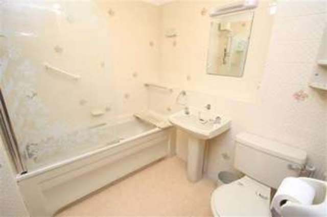 Coloured suited comprising panel enclosed bath with shower over and glass screen, wash hand basin, close coupled wc, extractor fan, towel radiator, fully tiled walls.