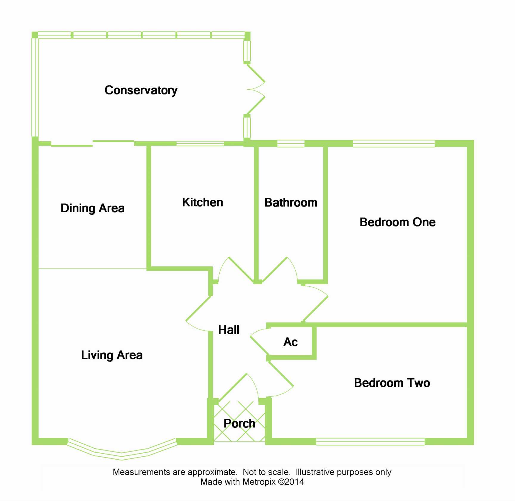 - Two bedrooms, bathroom