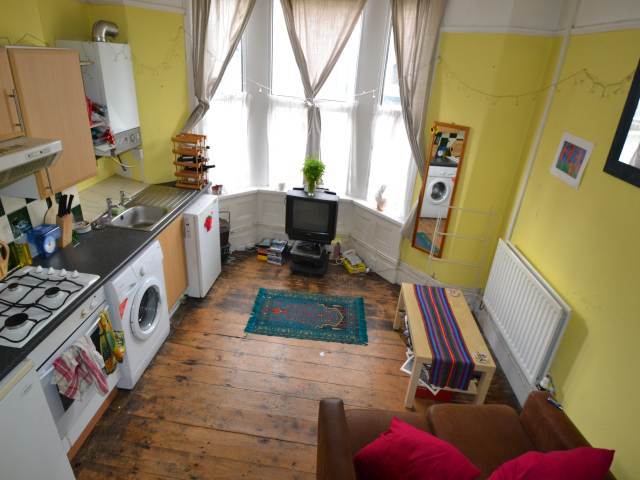 Ikea style kitchen, stripped floorboards and a large double glazed bay window makes this 1 bed flat a welcome refuge after a hard day at work. The beech coloured kitchen comes with an integrated gas hob and electric oven, microwave and fridge freezer. The bedroom benefits from a double bed, wardrobe, as well as really good quality carpet. If your priority is quality and style rather than loads of space, this will be ideal.Bathroom 1Ground Floor RearHallKitchenLiving Room and Kitchen - 3.50m ( 11'6'') x 4.40m ( 14'6'')
