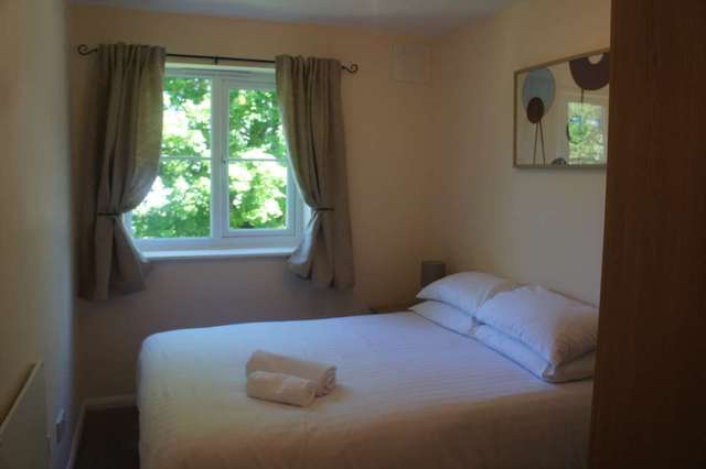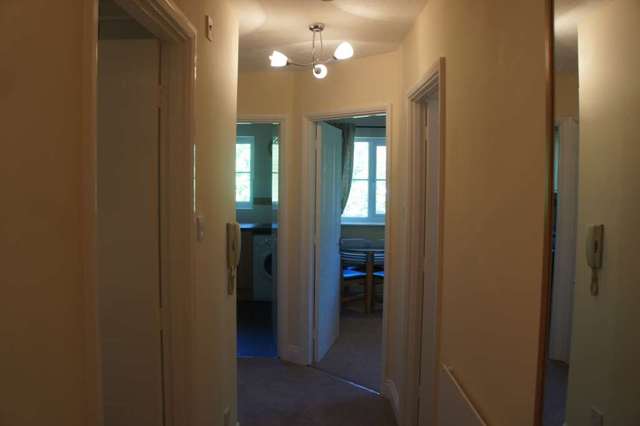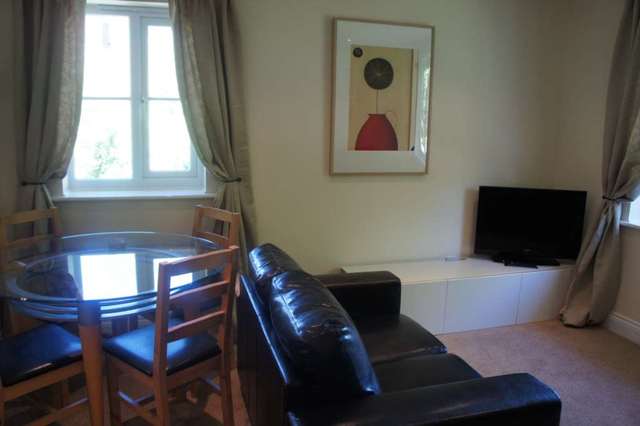 A large apartment on the first floor of this private block. FULLY FURNISHED with 2 large double bedrooms with long hanging wardrobes, en-suite bathroom to main bedroom with walk in shower, fully fitted family bathroom and large open plan living room. On-site parking is provided and the development is in easy walking distance of the Town Centre shops, train station, bus garage, gym, park and local schools.