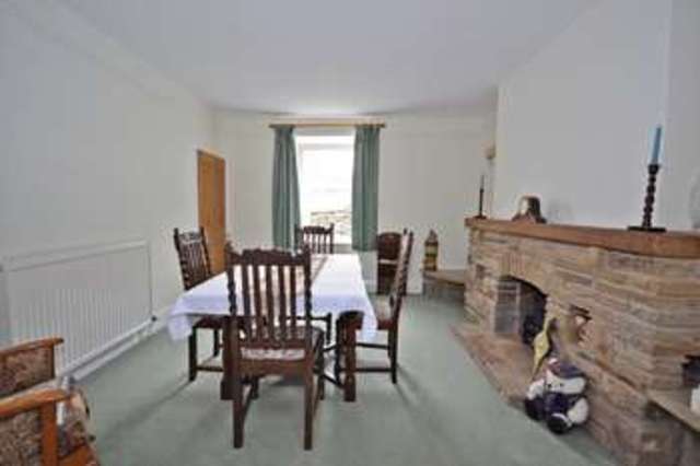 SEPARATE DINING ROOM 13' 1" x 12' 0" (3.99m x 3.68m) UPVC double glazed window to the front, large opening leading through to the dining kitchen at to the rear. The focal point of the room being a large imposing stone fireplace with plinth to either side and wooden mantle above, the fireplace has a stone recessed hearth housing the flame effect gas grate with open flue, two wall light points, picture rail. Central heating radiator.