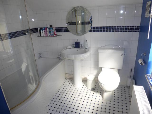 BATHROOM2.46m (8' 1") x 2.16m (7' 1")Double glazed frosted window to front, bath, pedestal wash basin, low flush wc, part tiled walls, built in cupboard, tiled floor.