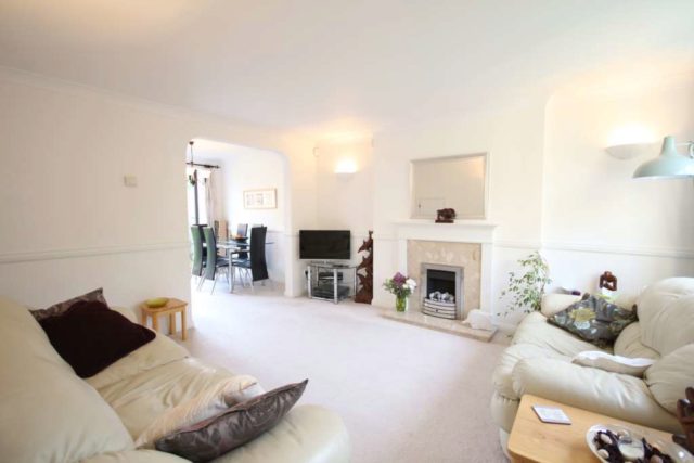 Front elevation double glazed window, feature fireplace with decorative surround, TV point, BT point, radiator.