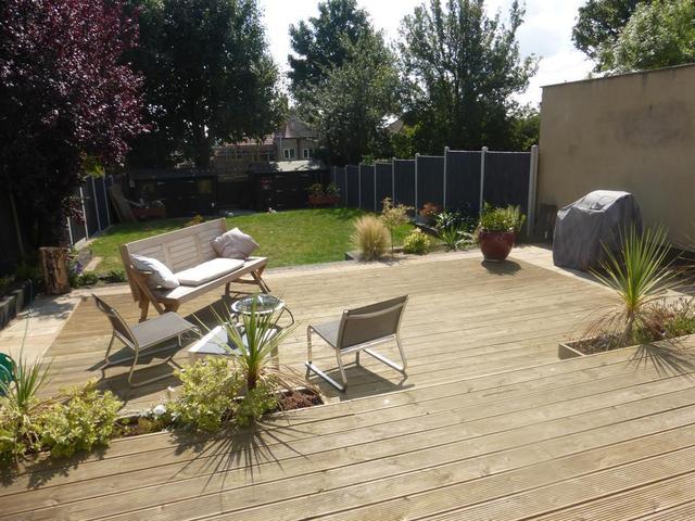 REAR GARDENFence enclosed, side access, mainly laid to lawn, decked area, two sheds with power and lighting, outside power and water tap.