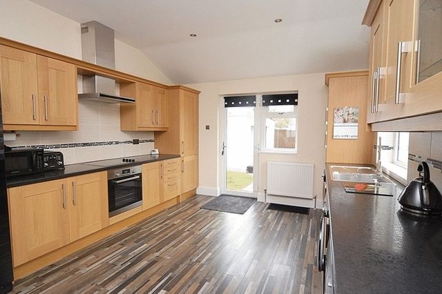 The bungalow has accommodation comprising living room, kitchen/diner with solid oak units, a modern 4-piece bathroom and 3 bedrooms. Externally, the property has gardens to 3 sides with the front having a selection of young shrubs and bushes. The side garden is laid to lawn with a brick paved path leading to the rear garden. The rear garden is great space and benefits from having a lawned area and a brick paved driveway/patio area. Also to the rear there are double side gates which open to allow off road parking and lead to the detached garage which benefits from having power and light.
