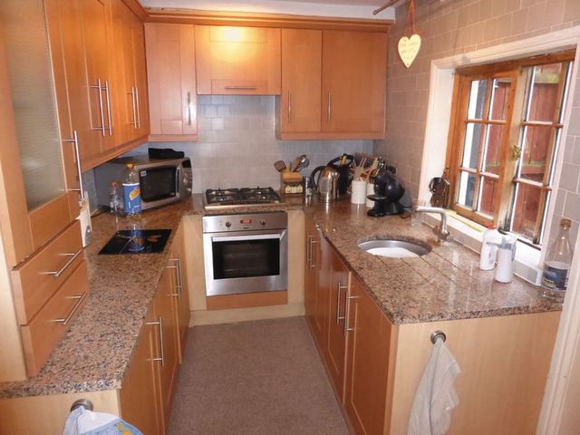 - Modern solid ash wood Galley kitchen units with fitted appliances.