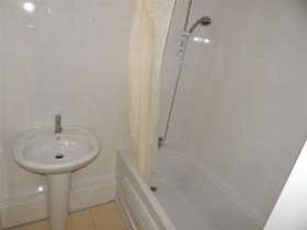 Four piece with deep panelled bath with mixer tap, vanity wash hand basin in vanity unit with cupboards under, mixer tap, shower cubical and tiled splashbacks and low-level WC, tiled splashbacks, obscure double glazed window to side, tiled flooring, heated towel rail.