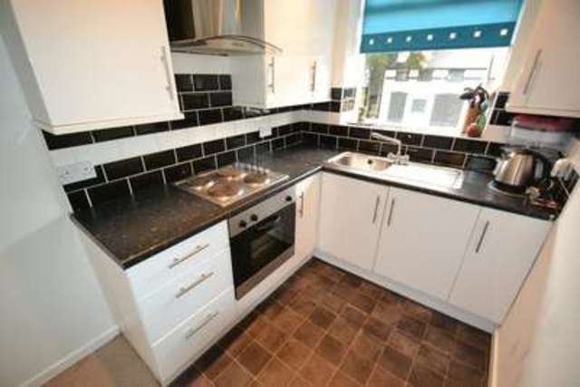 Fitted with contemporary range of wall and base units with integrated sink and drainer unit. Built in oven, hob and extractor fan. There is a double glazed window overlooking the rear garden with a back door leading outside. With space for a fridge/freezer. Ceiling light point.