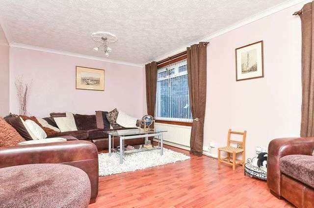 Set to the rear, off the ground-floor hallway, this large living room offers ample dining space and benefits from natural light provided by a window and rear door. Features include wood-effect laminate flooring, two radiators, plain coving, ceiling light fittings and cable TV and telephone points.