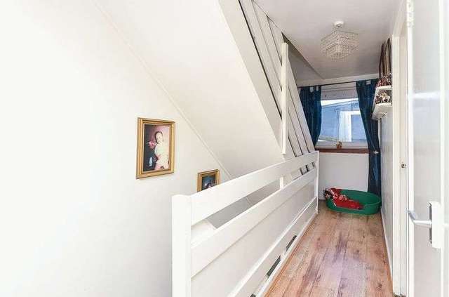 Serving bedrooms three and four, the landing is fitted with wood-effect laminate flooring and benefits from a deep, walk-in storage cupboard, with eaves access.
