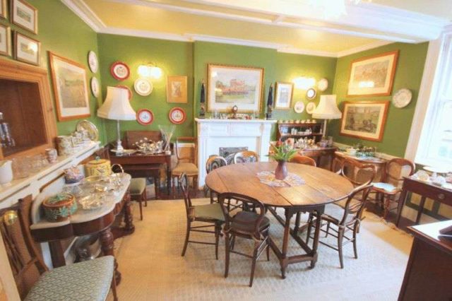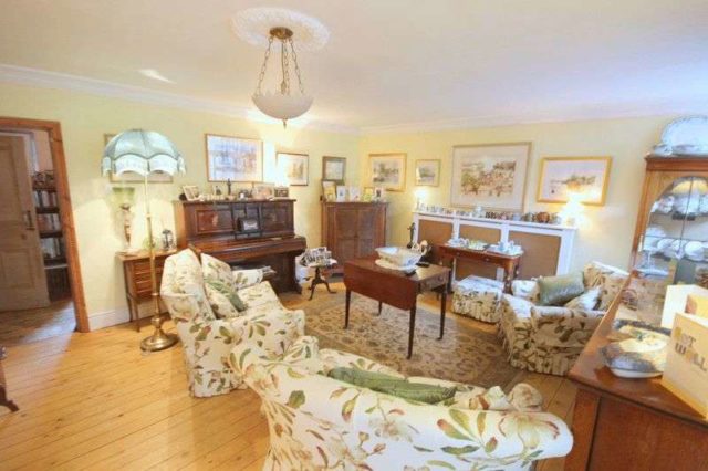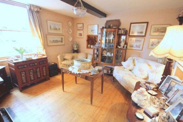 Having sash window to the front elevation with fitted shutters, original feature fireplace with marble surround and tiled and cast inset with open fire facility, wood flooring, radiator, beamed ceiling, TV point and built-in display cabinet.