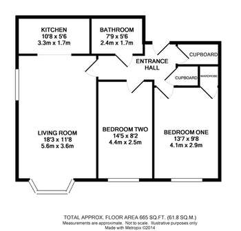 Bedroom 14'5\" x 8'2\" (4.4m x 2.5m).