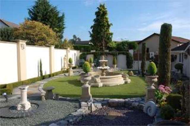 GARDENS:- The gardens are laid to the front, side and rear of the property and have been designed to an 'Italian style' being low maintenance incorporating artificial grass with a range of rockery display beds, water features, natural stone paths and seating areas with a variety of mature trees and shrubbery. The garden is enclosed by rendered walling making it most private and peaceful.