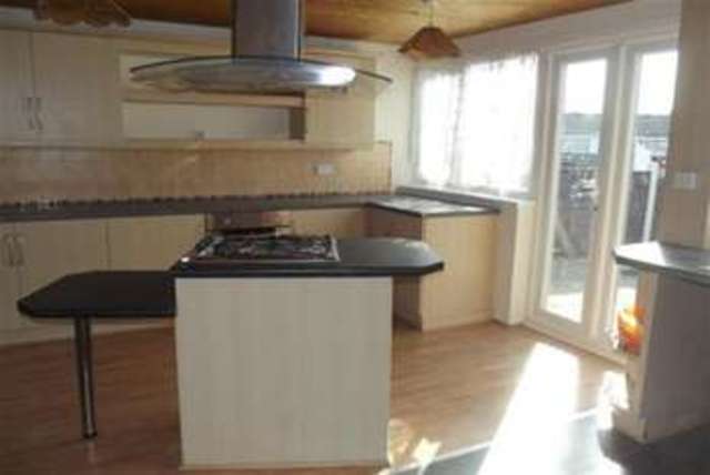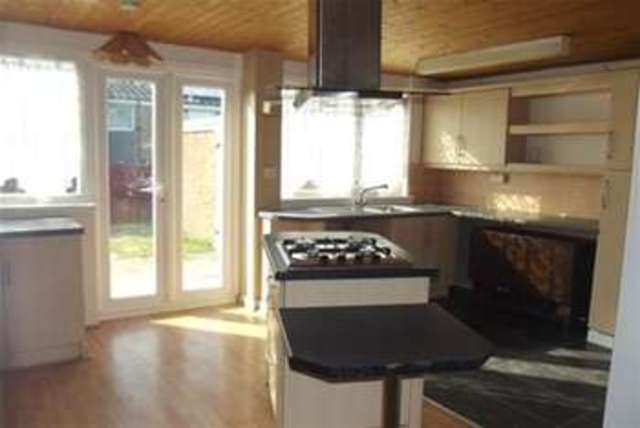 The lounge is of a good size and has been redecorated, having laminate flooring & bay window. An archway leads onto the kitchen which again is larger than expected,having plentiful wall and base units and a central island which houses the gas hob. There is also room for a table and chairs and a large under stairs storage cupboard. There is also a back door giving access to the rear garden.