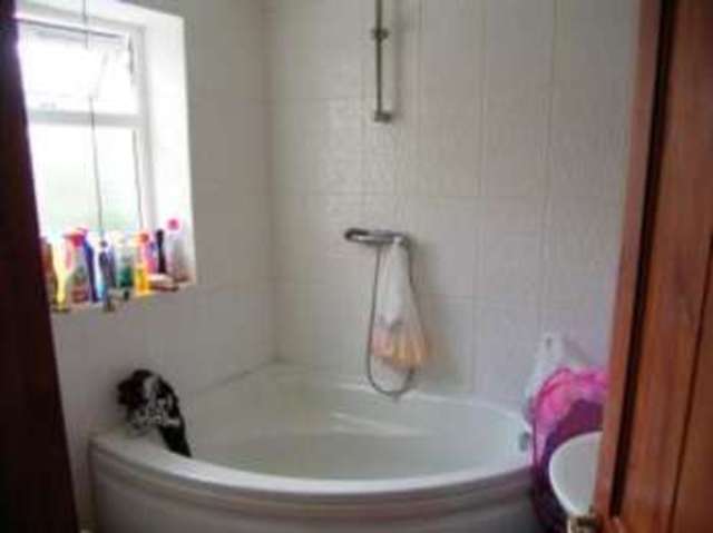 | Ground Floor Bathroom | Double glazed window to the side, corner panelled bath, pedestal wash hand basin, low level WC and tiled splashbacks.