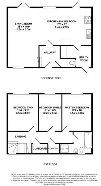 First Floor LandingMaster Bedroom 11'4\" x 10' (3.45m x 3.05m).