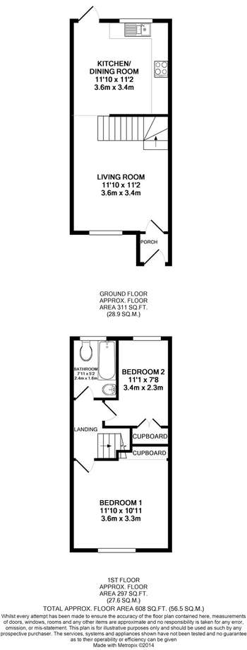 Bedroom Two 11'1\" x 7'8\" (3.38m x 2.34m).