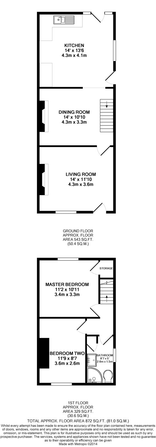 Dining Room 14' x 10'10\" (4.27m x 3.3m).