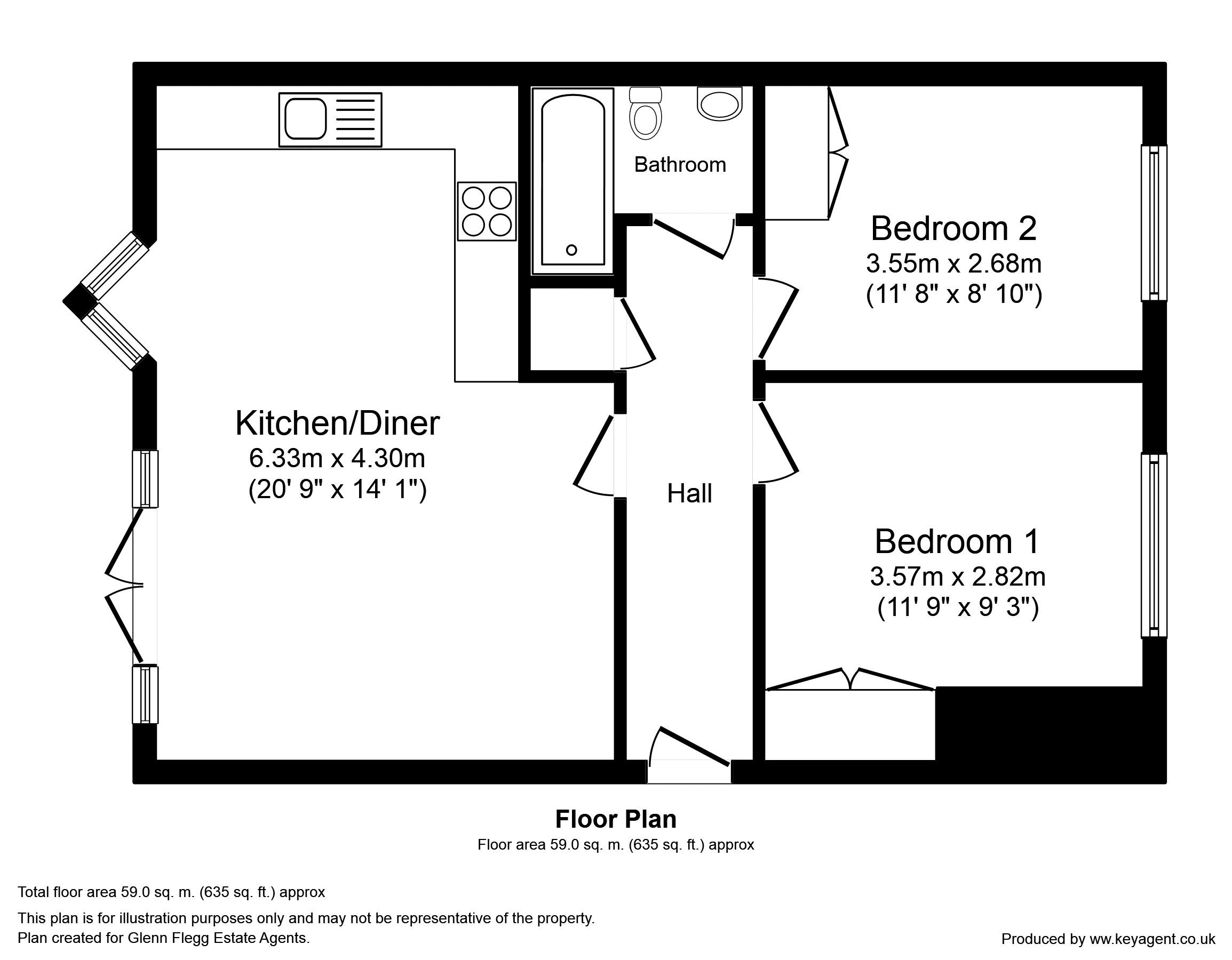 Property comprises of lounge with open plan kitchen, two double bedrooms and bathroom.