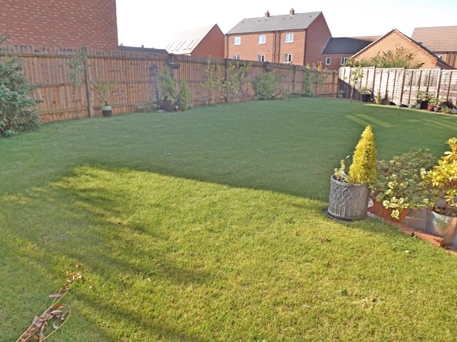 Accessed via a PEDESTRIAN GATE to the side of the property and a further PEDESTRIAN GATE from the parking/garage area with paved pathway leading to the conservatory. The garden is SOUTH-FACING and of good size for a newly constructed property and is NOT OVERLOOKED FROM THE REAR. Fully enclosed by red brick walling to one side and fencing to two sides and is mainly laid to lawn with small borders planted with small specimen trees, flowering shrubs and evergreens. A paved pathway leads around the house to a PAVED PATIO AREA with overhead lighting, French doors to the kitchen/family room and outside water tap.